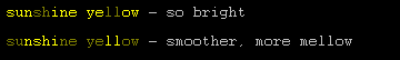 Also, if you're using light colors to make transitions between multiple colors like in the previous example, go ahead and try only one letter of each light color at a time. This makes the fade sharper and prettier.